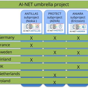 The AI-NET umbrella project structure is based on three sub-projects as shown in the figure below. These sub-projects are formed by the system manufacturers together with selected partners. The system manufacturers take over the technical management of these sub-projects and the responsibility for defining the content. Separate funding applications are submitted to the national funding authorities by each partner (except for sub-contractors).